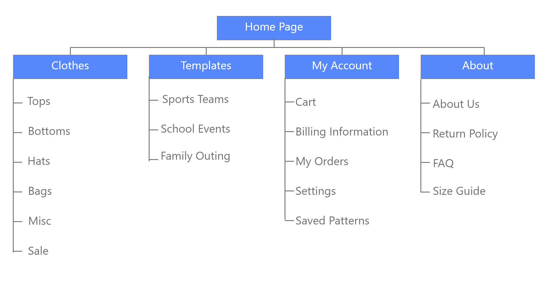 To address the difficulty users had face with other websites organization I create a sitemap to plan out how i was going to layout the various pages. My goal here was to make strategic architecture decisions that would improve navigation. Specifically I wanted to make the structure intuitive to users and make navigation simplistic.